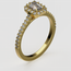 - This elegant engagement ring showcases a stunning emerald-cut laboratory-grown diamond framed by a halo of brilliant round lab diamonds. Crafted in 14K Yellow, Rose, or White Gold, the design features a slim, diamond-accented band with pavé-set stones that complement the elongated center stone.